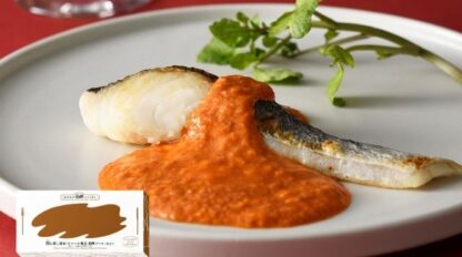 酒かすと味噌を使用した濃厚なオマール海老ソースと、蒸し焼きにした鱈の組み合わせをお楽しみください。