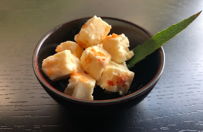クリームチーズを、糀のチカラで発酵させた唐がらしに漬け込みました。