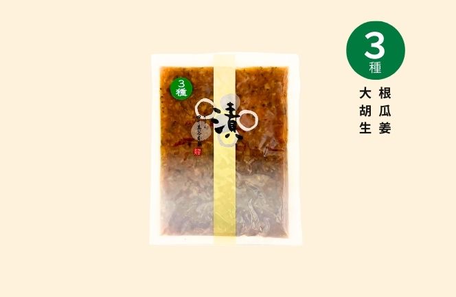代表商品のひとつ「金城漬」の大根・胡瓜・生姜を細かく刻み、食べやすくアレンジしました。